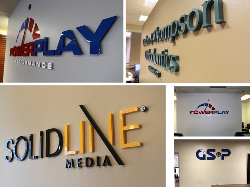 Acrylic signs feature individually-cut acrylic letters, which are stud-mounted to your wall or are used with spacers to float the sign. These business lobby signs produce a shadow effect that adds depth and visual interest to your logo.